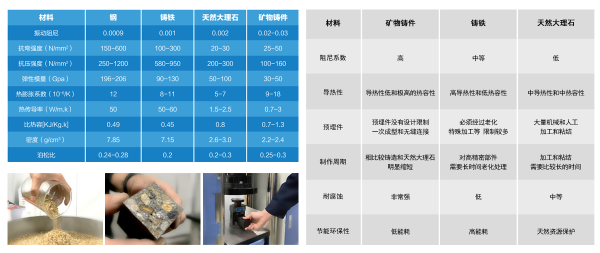 礦物鑄件對溫度的變化不敏感,導(dǎo)熱性比金屬要低很多,有效地把機(jī)床因受熱引起的幾何尺寸誤差控制在很小的范圍,從而保證了機(jī)床的精度。