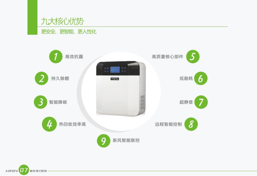 AIRSPA恒氧恒凈新風(fēng)凈化機(jī)主要核心部件(全熱交換芯、控制板、二氧化碳傳感器等)均采用國際知名品牌產(chǎn)品、質(zhì)量可靠、性能優(yōu)良。